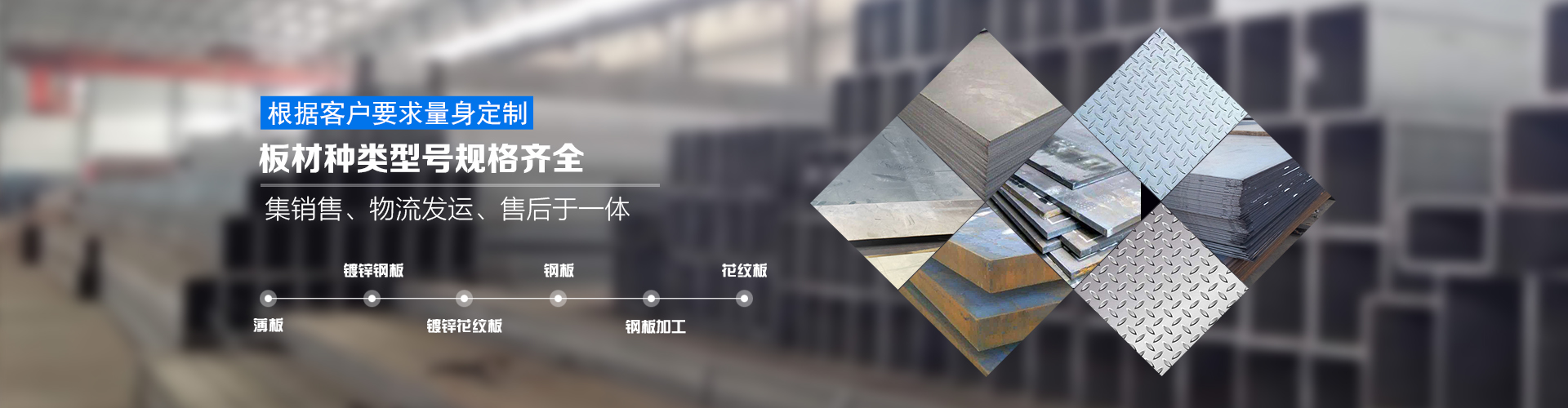 天津國耀鋼鐵有限公司是一家主要生產銷售鋼板的企業,主要產品有鋼板、開平板、花紋板、鍍鋅鋼板、鍍鋅花紋板、卷板、開平板等,材質有Q235B、Q345B(Q355B)、42CrMo等各種材質鋼板、合金鋼板、高強度鋼板,規格尺寸從0.5mm-600mm不等,公司備有數控切割機、剪板機、折彎機等設備,可以加工各種形狀以及焊接卷筒等;常年與全國物流專線合作,保證貨物以快速、安全、價格低廉送到客戶手中;鋼板